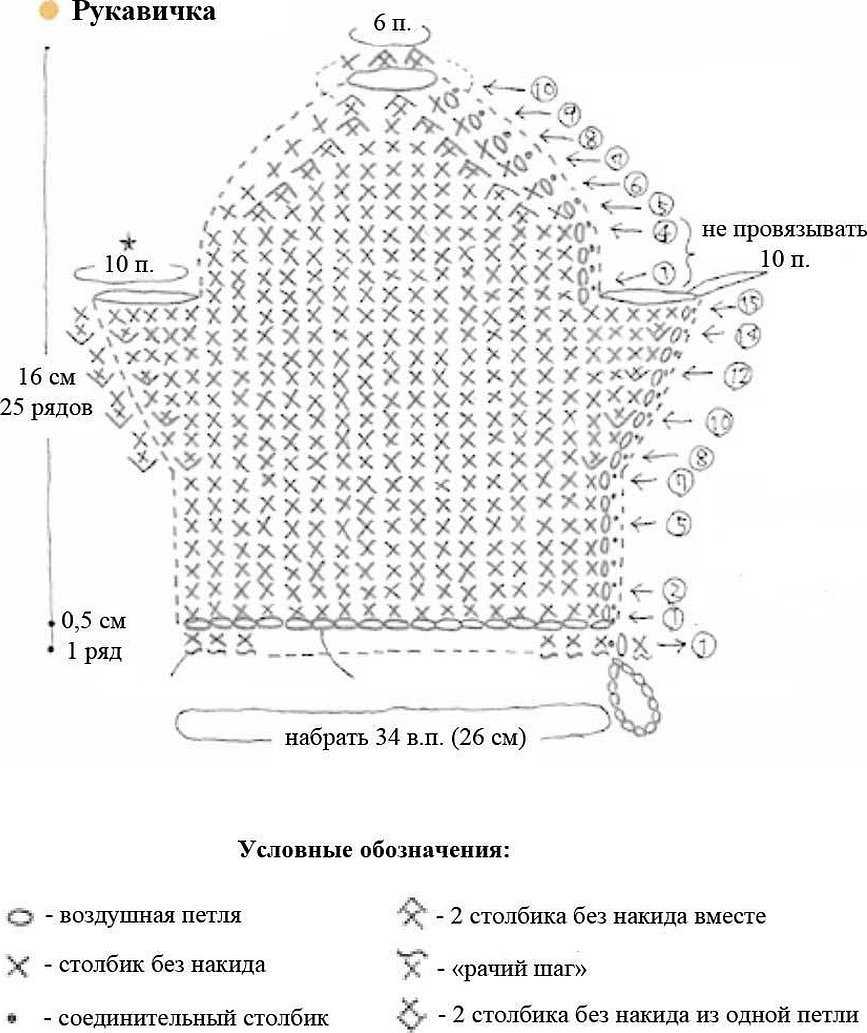 Вариант вязки варежки с пальцами указан на схеме ниже.
