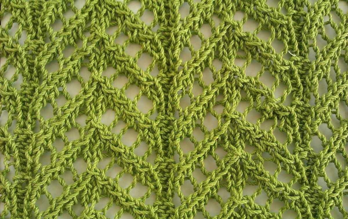 7-й ряд: 1 лиц., 2 изн., 8 петель перекрестить налево, 2 изн., 8 петель перекрестить направо, 2 изн., 1 лиц., петли на 2-х спицах со стороны ладони вяжем лиц. Повторяем ряды 1-7 на протяжении всей работы.