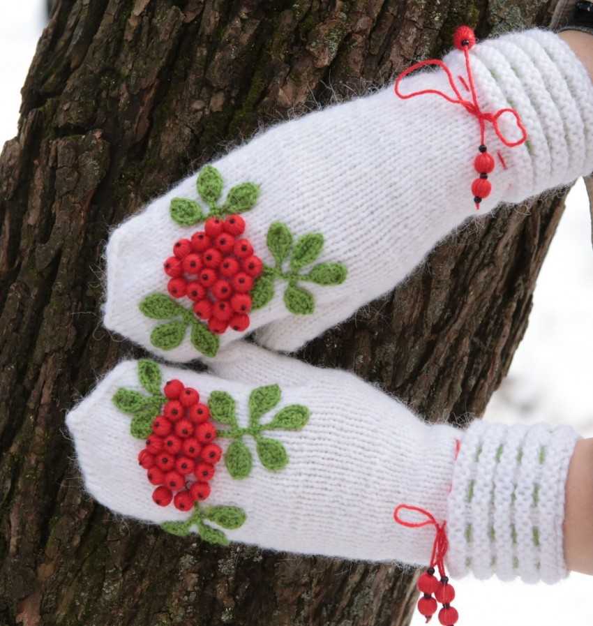 Итак, мы подробно рассмотрели разные техники вязания варежек спицами, а также массу узоров, которые и вяжутся, и вышиваются на готовых изделиях.