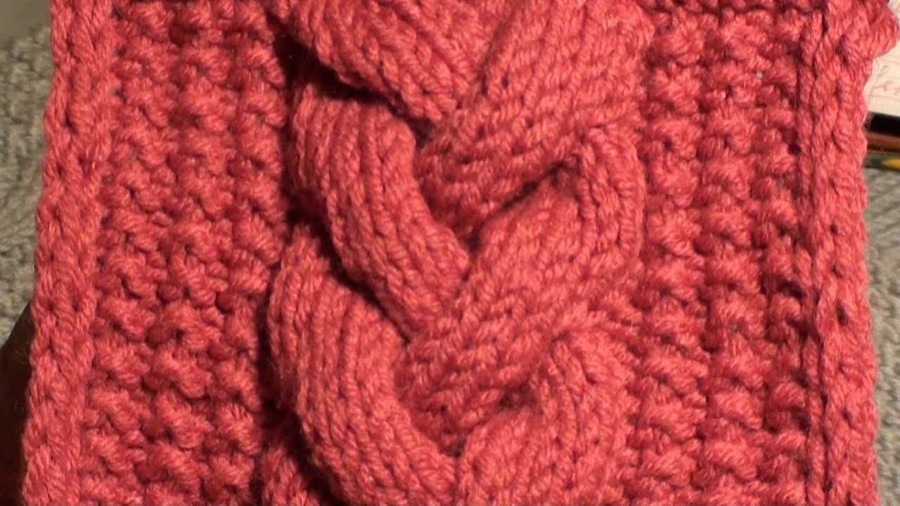 Вязка узора “косы”: 8 петель перекрестить налево (оставить 4 петли на вспомогательной спице перед работой, 4 лиц. и провязать петли со вспомогательной спицы).