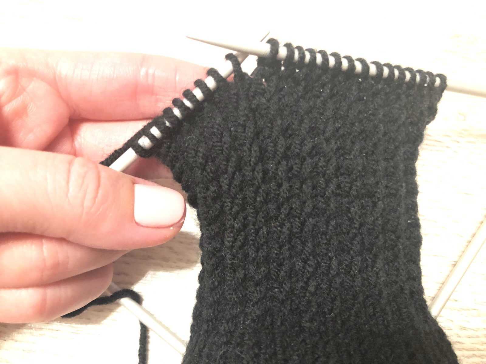 Вязание снова вернулось на 4 спицы (5-ая — рабочая).