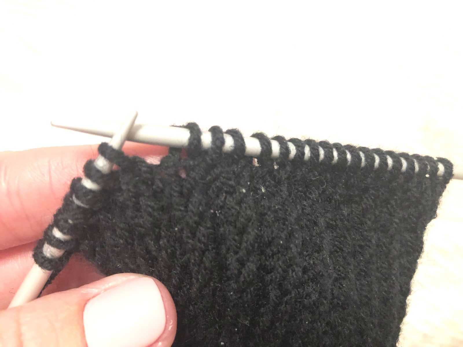 Далее лицевой гладью чётное количество рядов, у нас – 16.