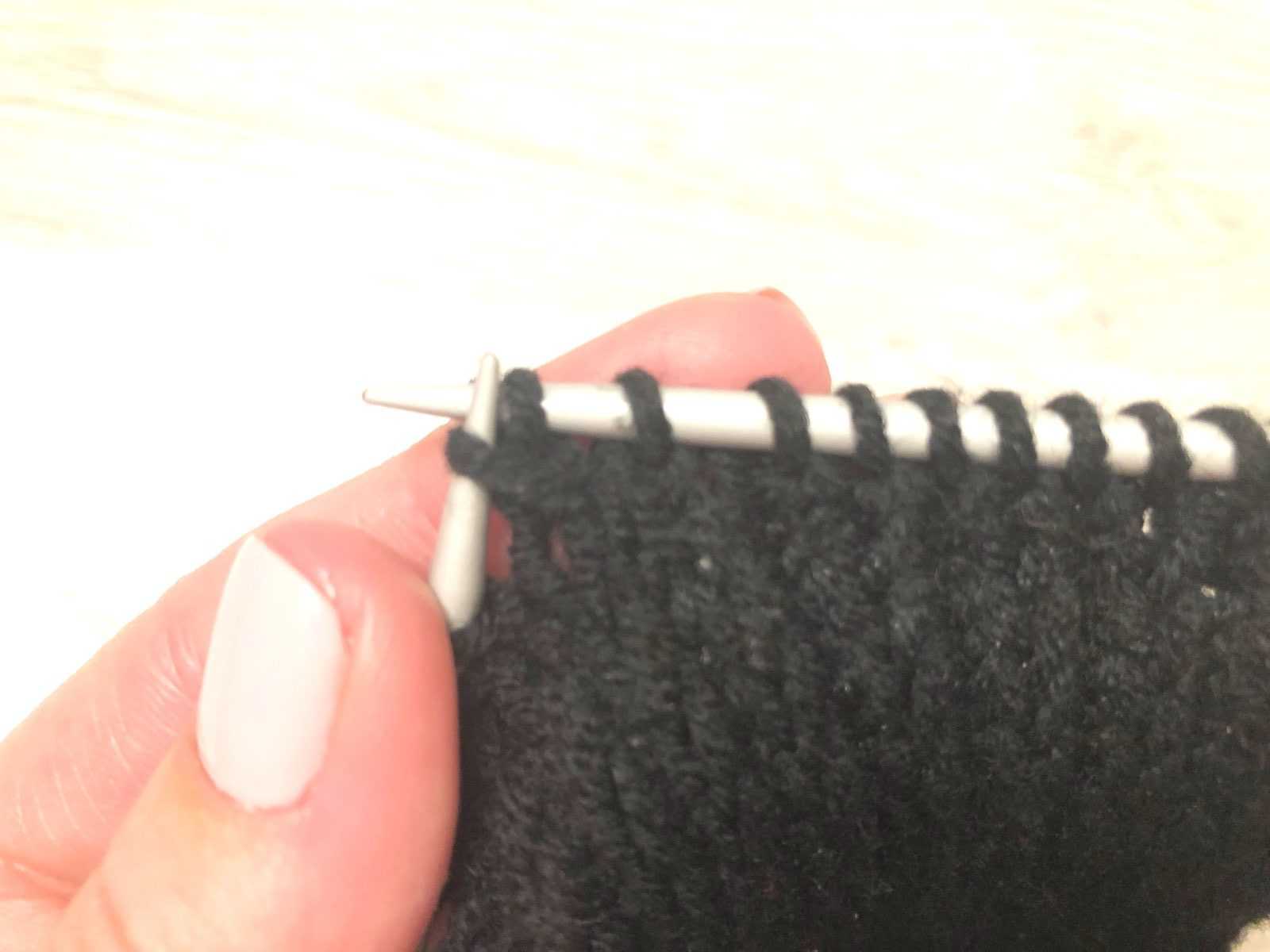 Следующие 16 рядов нужно выполнить чулочной вязкой — все лицевые ряды вяжутся лицевыми петлями, а изнаночные — изнаночными.