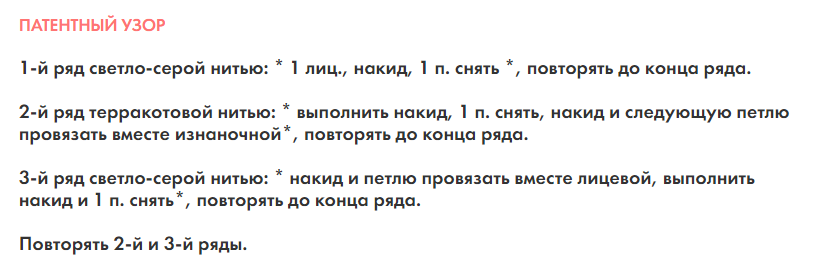И 33 ряда по 24 петли (10 на 10 см). Это рельефный узор (спицы под номером 4, в одну нить).
