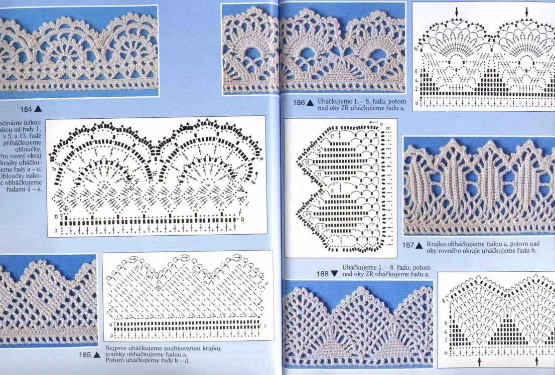 В описаниях чаще всего присутствуют различные кружевные орнаменты или повторяющиеся раппорты. Вот лишь некоторые популярные детали, которые может содержать ажурная обвязка края крючком: