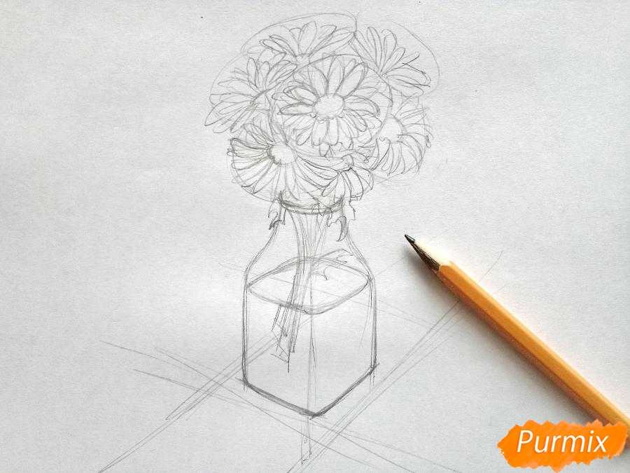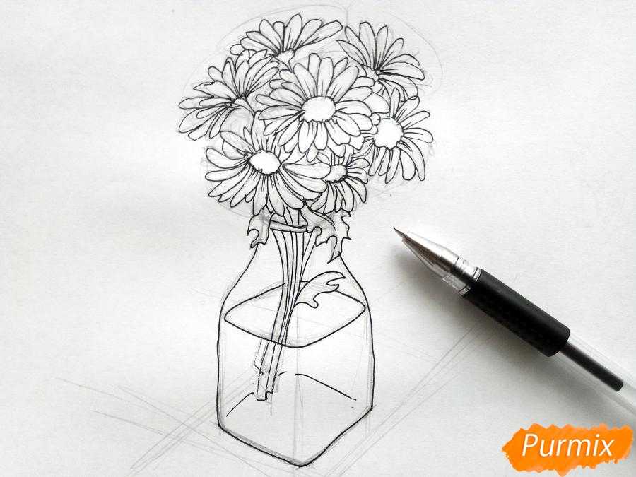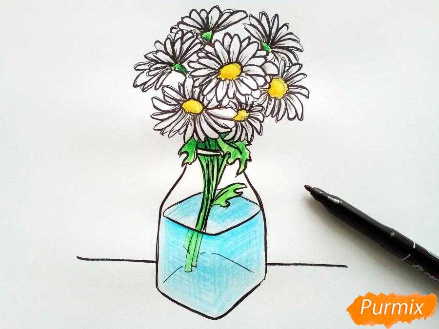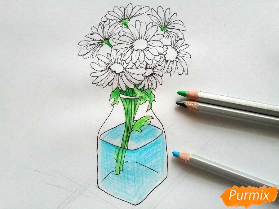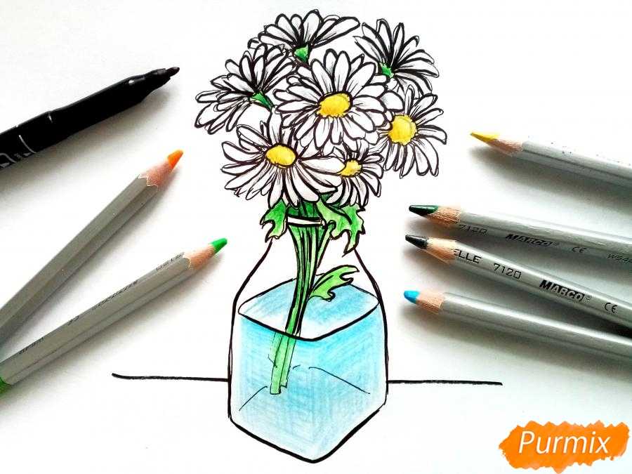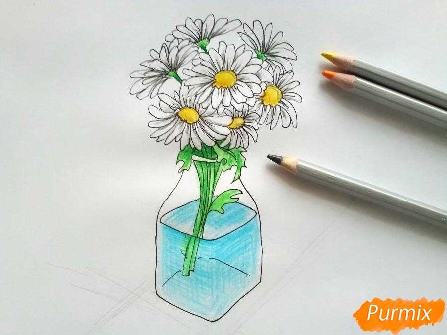 Как нарисовать вазу с ромашками карандашами поэтапно