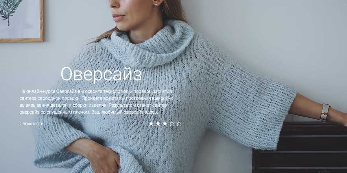 За 19 видеоуроков онлайн-курса по вязанию спицами вы освоите технологию и порядок расчётов для изделий оверсайз. Вы научитесь снимать мерки для выкройки и учитывать все особенности фигуры. Вы узнаете, как делать различные узоры и сможете экспериментировать с ними, создавая неповторимую вещь.