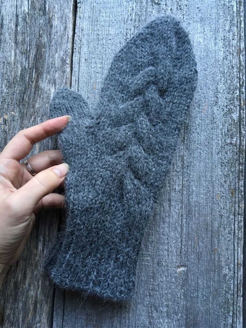- Убираем рабочую нить на изнаночную сторону. При необходимости варежки стираем или распариваем.