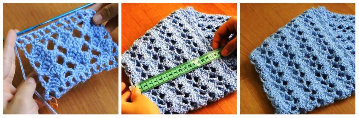 - Сначала нужно связать образец, это позволит определить точное количество необходимых петель для дальнейшей вязки.