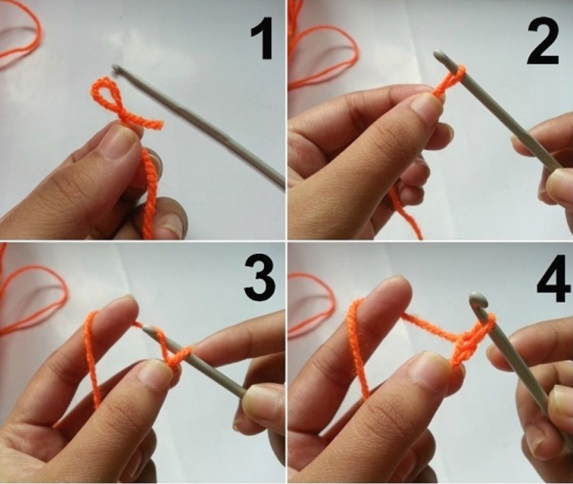 Захватываем рабочую нить и протягиваем ее через петлю. И еще захватываем рабочую нитку и провязываем ею столбик без накида через те 2 петельки, которые образовались на крючке. Так мы выполнили первый узелок и сформировали нужную нам петлю для узора.
