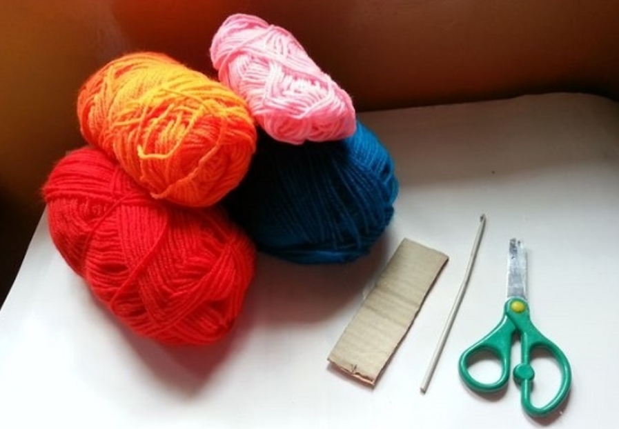 - нитки (шерсть 50%, акрил 50%) – 6 разных оттенков, можно выбрать из остатков;