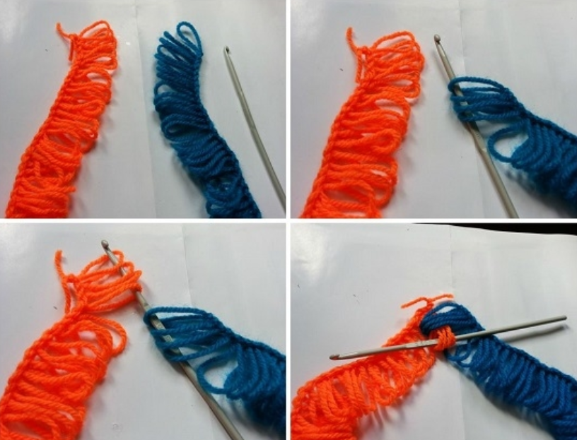 - С помощью столбиков, выполняющихся с накидом, нужно связать несколько рядов 1 цветом.