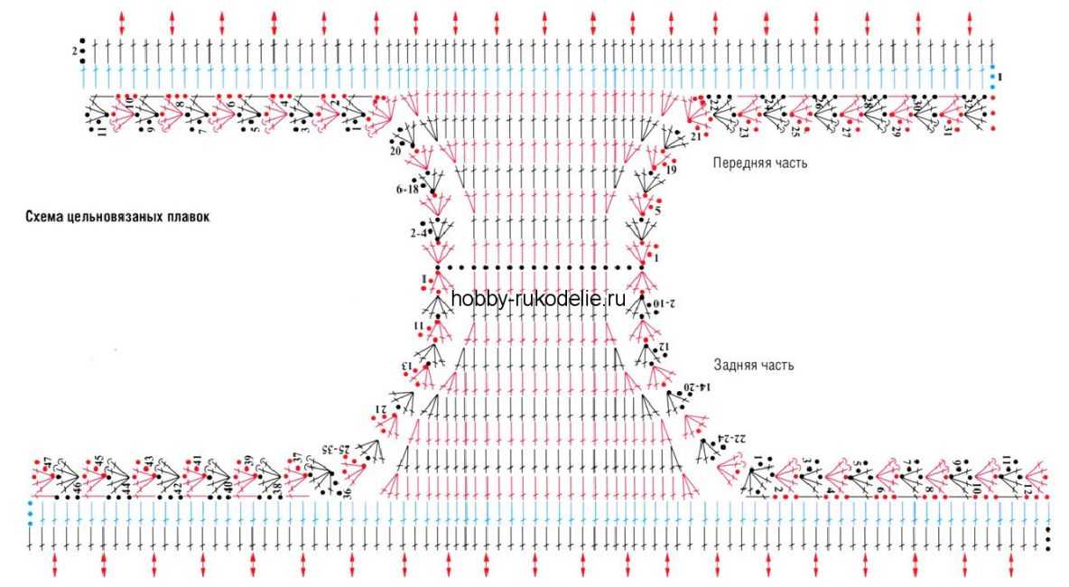 Схема вязания плавок довольно простая. Начнем именно с этого элемента.