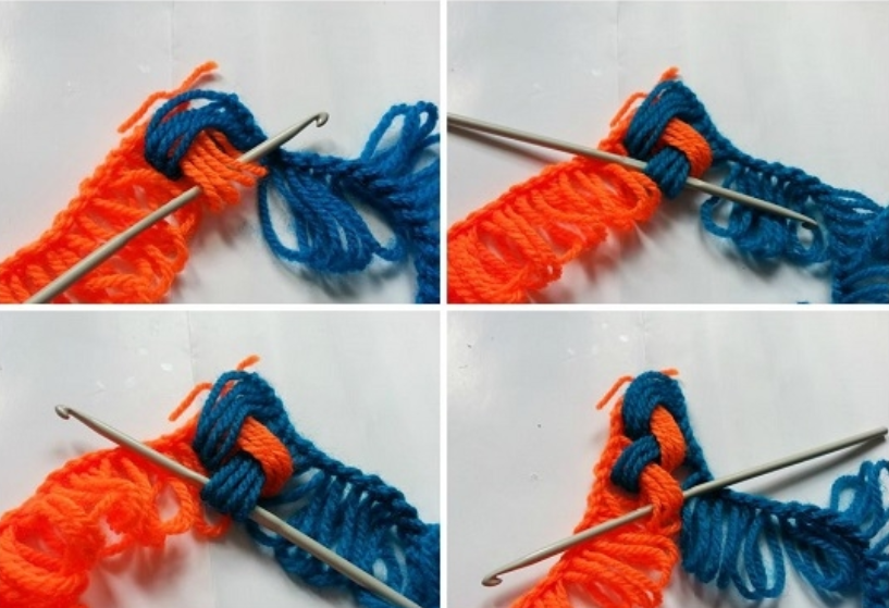 - Данный орнамент очень легко выполняется с помощью крючка (связанная косичка в 1-2 сантиметра продолжается).