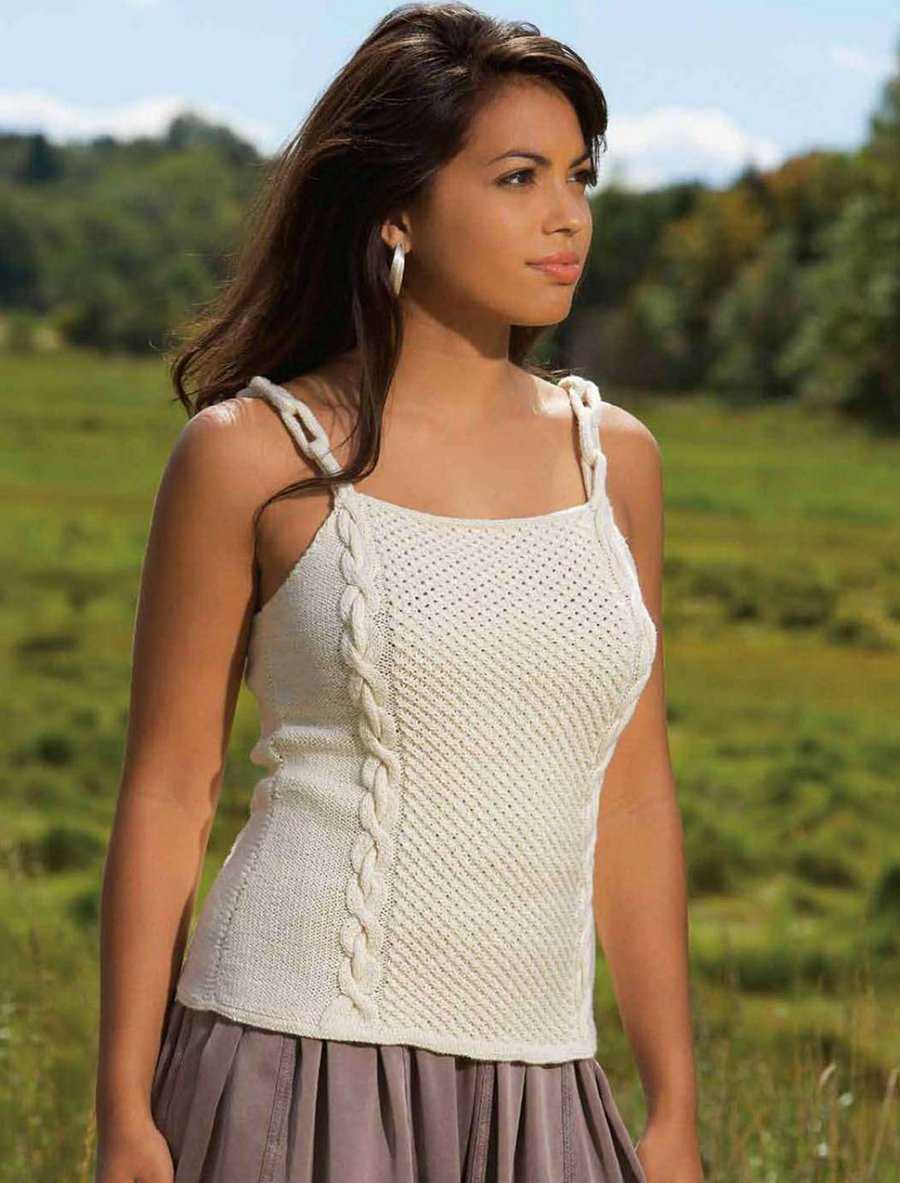 Женский вязаный топ — едва ли не самый оптимальный вариант одежды для жаркого времени года. Эта разновидность майки без рукавов бывает двух типов: цельные модели, связанные круговыми спицами (реглан), и скроенные из нескольких частей. На теле одежда держится за счет лямок, их длина может регулироваться. Популярные варианты бретелей: