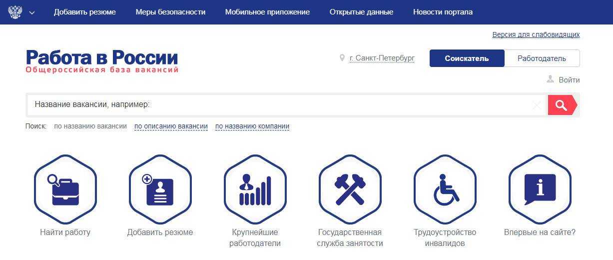 Через этот сайт вы легко можете попасть на интересующую вас службу занятости вашего района. Также здесь имеется рубрика «работа для инвалидов». Стоит отметить весьма удобный дизайн сайта и легкость работы через мобильные устройства.