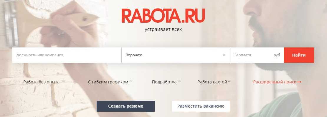 Если вы хотите найти работу водителем или продавцом – здесь самое подходящее для этого место. На момент публикации рейтинга на доске Авито было размещено более 1 млн резюме и около 250 тыс вакансий со всей России. Преимущество этого сайта еще и в том, что через него можно найти работу даже в самом маленьком населенном пункте.